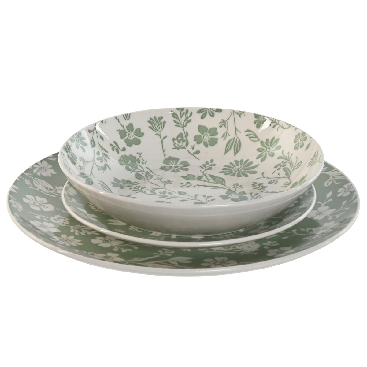 Dinnerware Set Home ESPRIT White Green Porcelain Floral 27 x 27 x 2 cm 18 Pieces