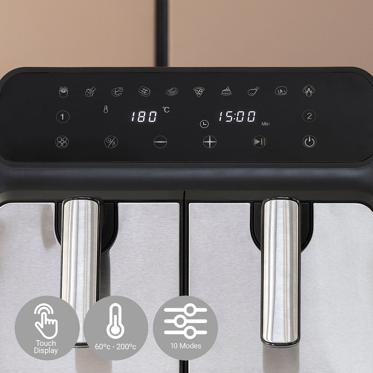 Luchtfriteuse InnovaGoods Fryinn Double 8000 Zwart 3400 W 8 L Roestvrij staal