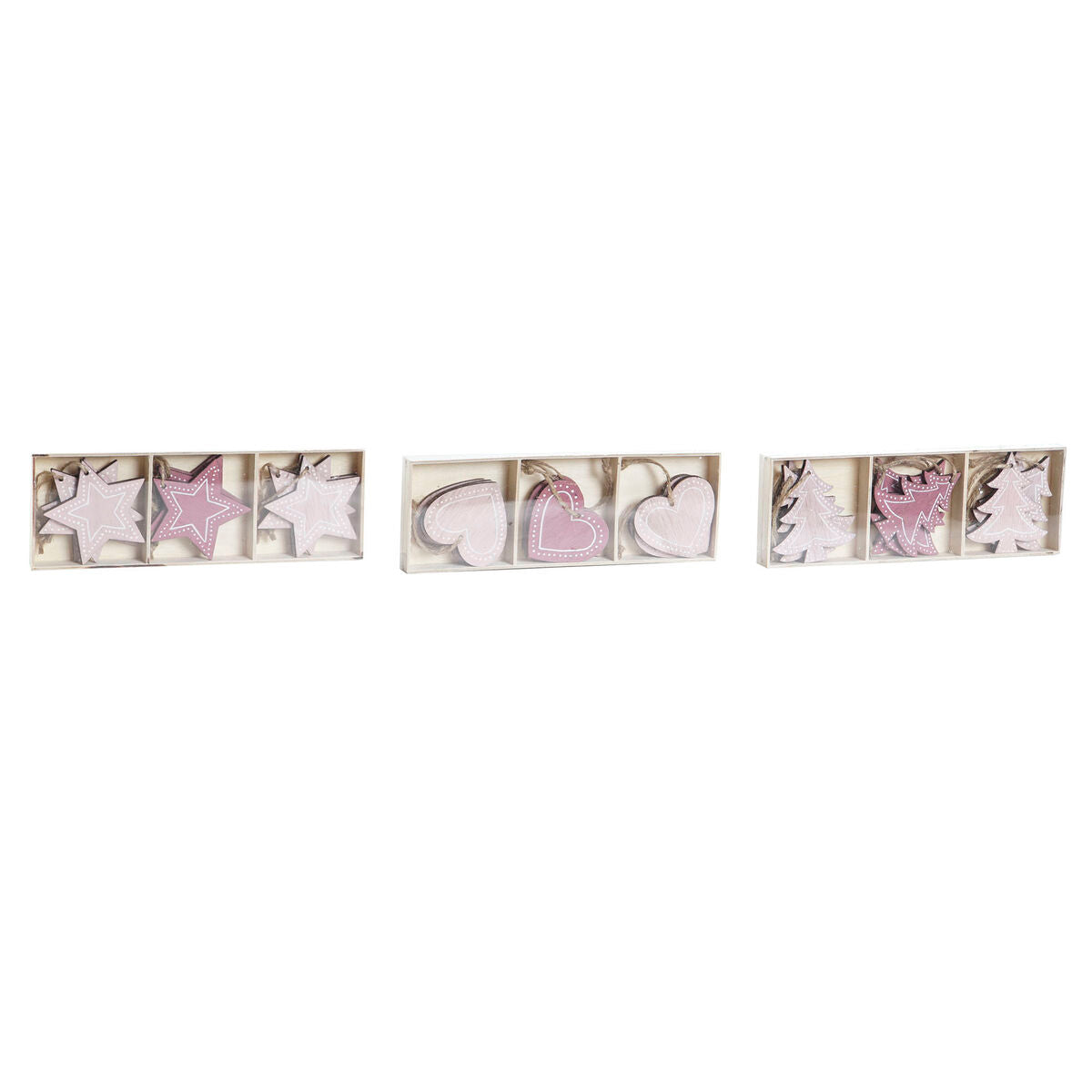 Ophangdecoratie DKD Home Decor Roze Licht Roze Hout 6,5 x 1 x 6,5 cm (9 Onderdelen) (3 Stuks)